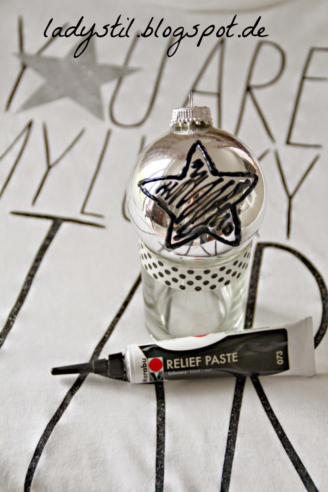 Tolle Idee mit der Paste ! Die silberne Kugel mit dem schwarzen Stern gefällt mir richtig gut.