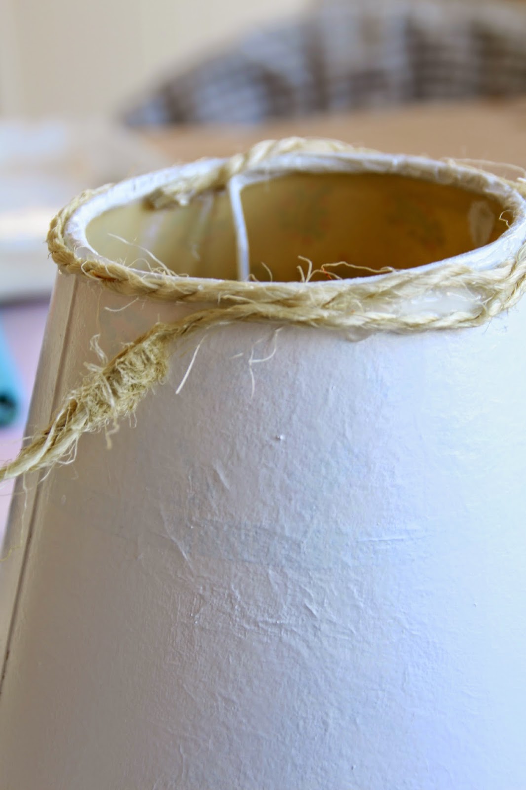 Nachdem der Lampenschirm wieder weiß war, hab ich ihn rundherum mit der dicken Kordel beklebt!