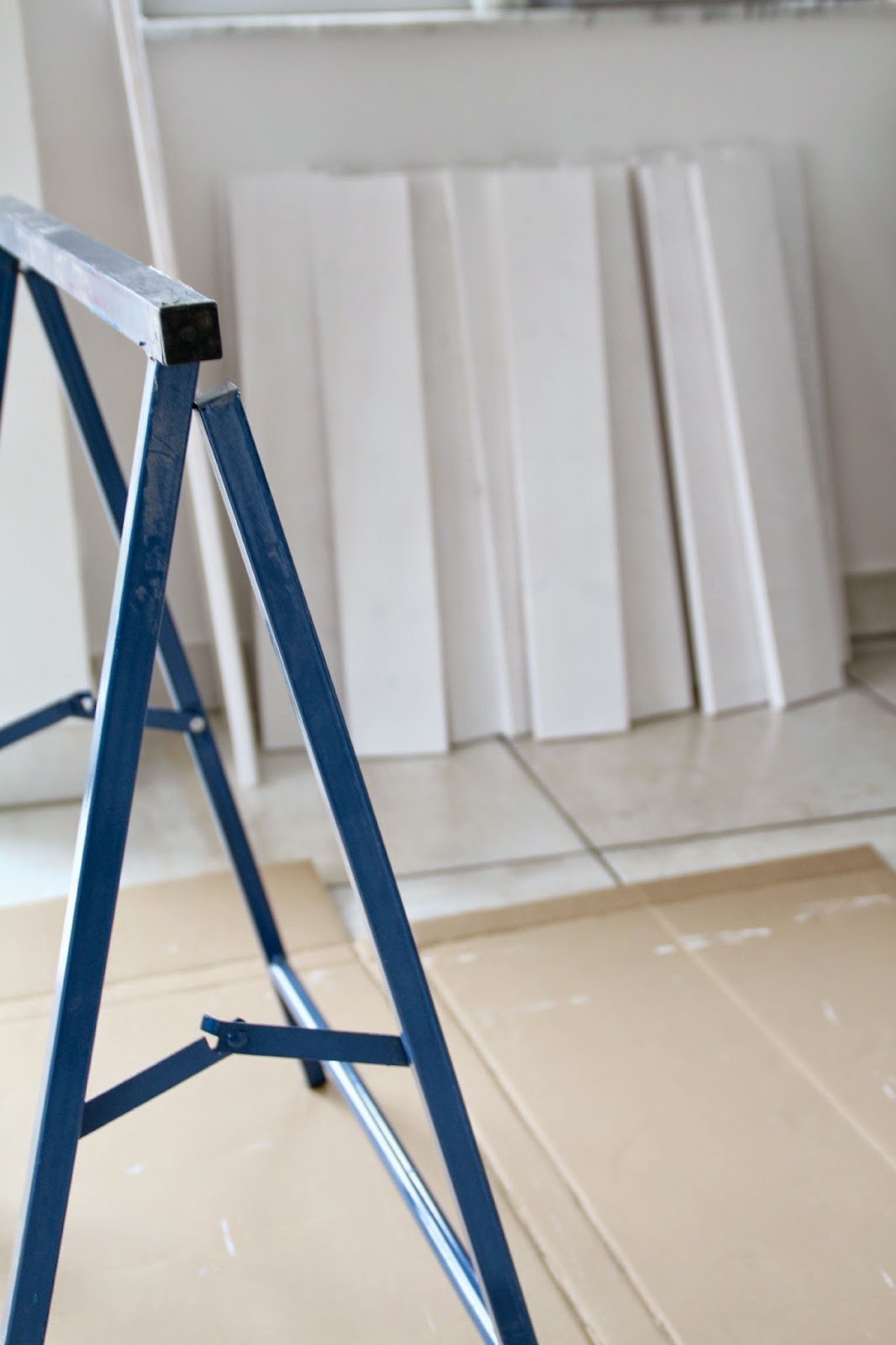 1. Zum Abknibbeln der Tapete haben wir die Leisten des Bettes an der Wand erstmal abgeschraubt