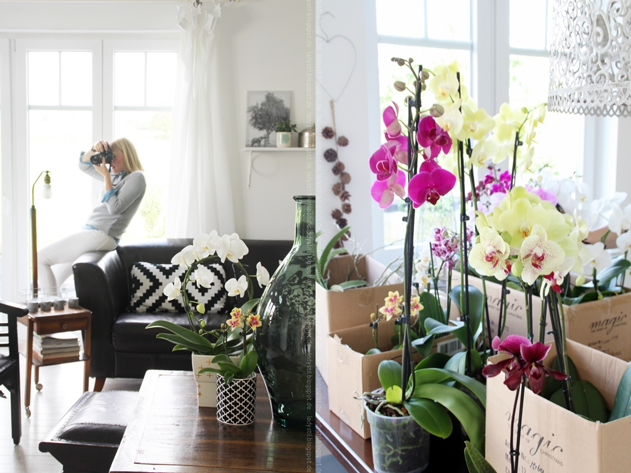 die Orchideen sehen super aus und passen perfekt zu Deiner Deko. Orchideen können auch richtig altbacken aussehen, aber bei Dir sieht alles so harmisch und stimmig aus. Ich liebe Orchideen, nur mein Mann hasst sie. Ich bekomme jedes Jahr zu Weihnachten von meinem Vater eine Orchidee und mein Mann verdreht schon immer die Augen… Er wünscht sich dann immer das sie direkt kaputt gehen, aber leider überleben sie meine gute Pflege immer und danken es mit immer neuen Blüten. Das Leben kann so hart und grausam sein haha.